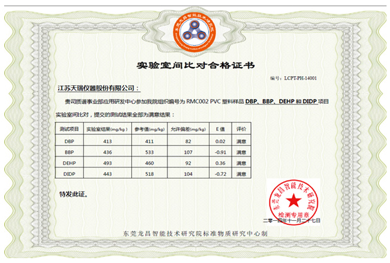 附錄3:實驗室間比對合格證書(十溴聯(lián)苯醚)