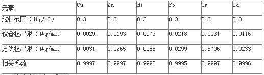 表1 待測(cè)金屬元素的檢出限及線性范圍