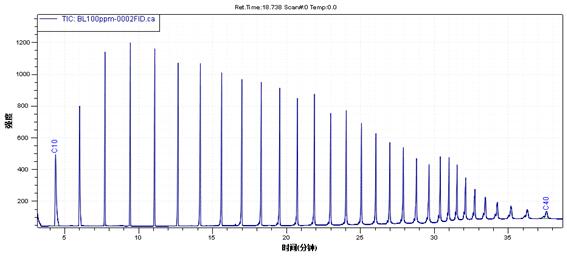 正癸烷到正四十烷(C10-C40)混標濃度ρ=31000mg/mL (各正構烷烴質量濃度均為1000 mg/L),溶劑為正己烷(國家標準物質網(wǎng));