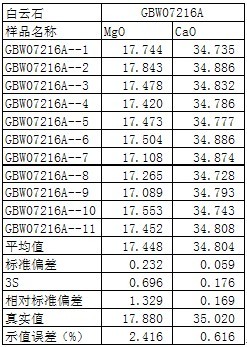 ④ .實(shí)際測(cè)試白云石國標(biāo)樣GBW07216A的數(shù)據(jù)如下為