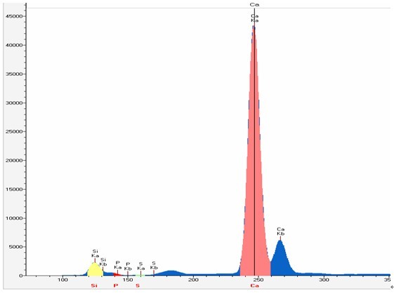 以下使用EDX 3600B型對(duì)白云石國標(biāo)樣GBW07216A實(shí)際測(cè)試的所得的譜圖,工作曲線等相關(guān)數(shù)據(jù):