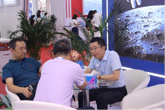 天瑞儀器副總經(jīng)理黎橋(右一)與客戶洽談合作