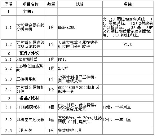 表1 天瑞儀器 EHM-X200大氣重金屬監(jiān)測儀技術參數(shù)
