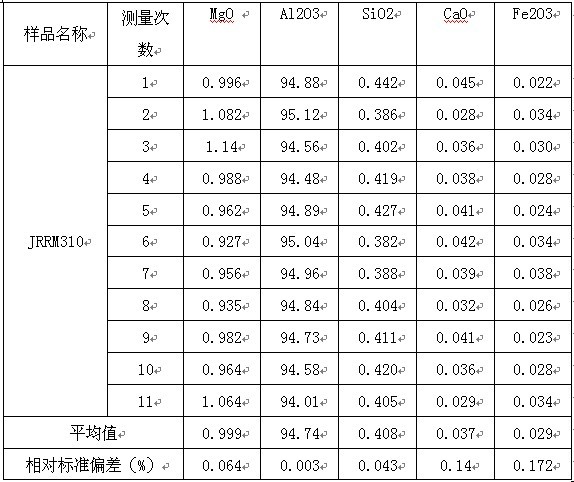 由以上測(cè)試實(shí)驗(yàn)數(shù)據(jù)可以看出,樣品重復(fù)測(cè)量11次的標(biāo)準(zhǔn)偏差符合客戶的要求,這也證明了X熒光光譜儀具有較高的測(cè)試精度,可以滿足耐火材料行業(yè)樣品測(cè)量穩(wěn)定性要求。