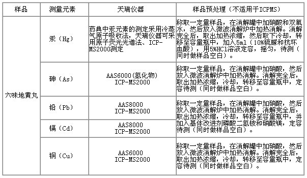 天瑞儀器參考《中華人民共和國藥典》,采用原子吸收光譜儀(AAS6000;AAS8000)、原子熒光光譜儀(AFS200系列)、電感耦合等離子體質(zhì)譜儀(ICP-MS2000),對六味地黃丸中鎘、鉛、銅、砷、砷、汞等重金屬的測定進(jìn)行研究,測試結(jié)果準(zhǔn)確度高,重復(fù)性好。