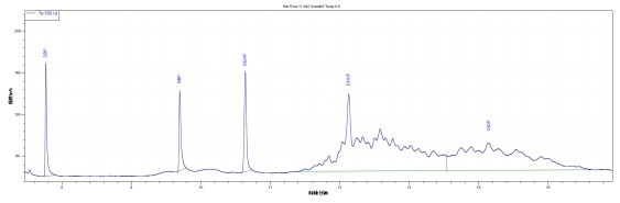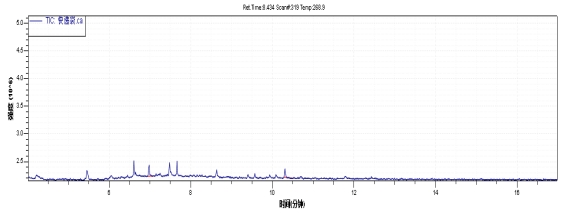 選取某品牌快遞包裝袋進(jìn)行鄰苯二甲酸酯的快篩測試,譜圖和檢測結(jié)果如下: