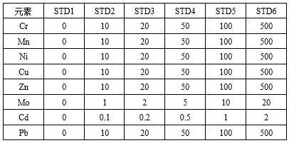 表2標(biāo)準(zhǔn)溶液濃度梯度(單位μg/L)