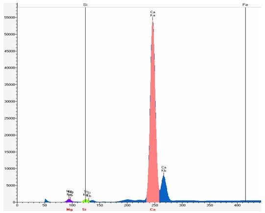 以下使用EDX 3600B型對(duì)白云石國標(biāo)樣GBW07216A實(shí)際測(cè)試的所得的譜圖,工作曲線等相關(guān)數(shù)據(jù):