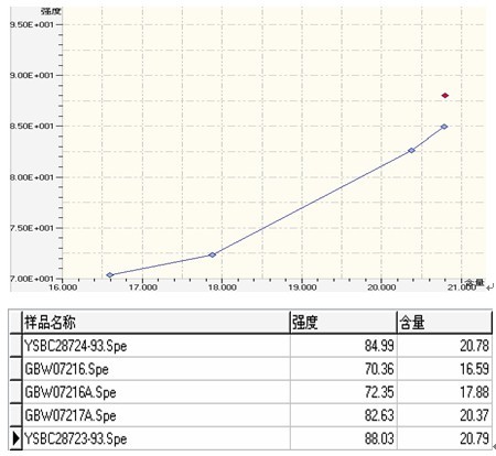 ② . 螢石國標(biāo)樣Si的工作曲線與相關(guān)數(shù)據(jù)