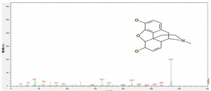 利用罌粟殼生物堿的理化性質(zhì),樣品在強酸環(huán)境下(pH:1-2),采用氣相色譜質(zhì)譜聯(lián)用儀進行檢測。采用保留時間和標準質(zhì)譜圖特征離子進行定性,外標法定量。